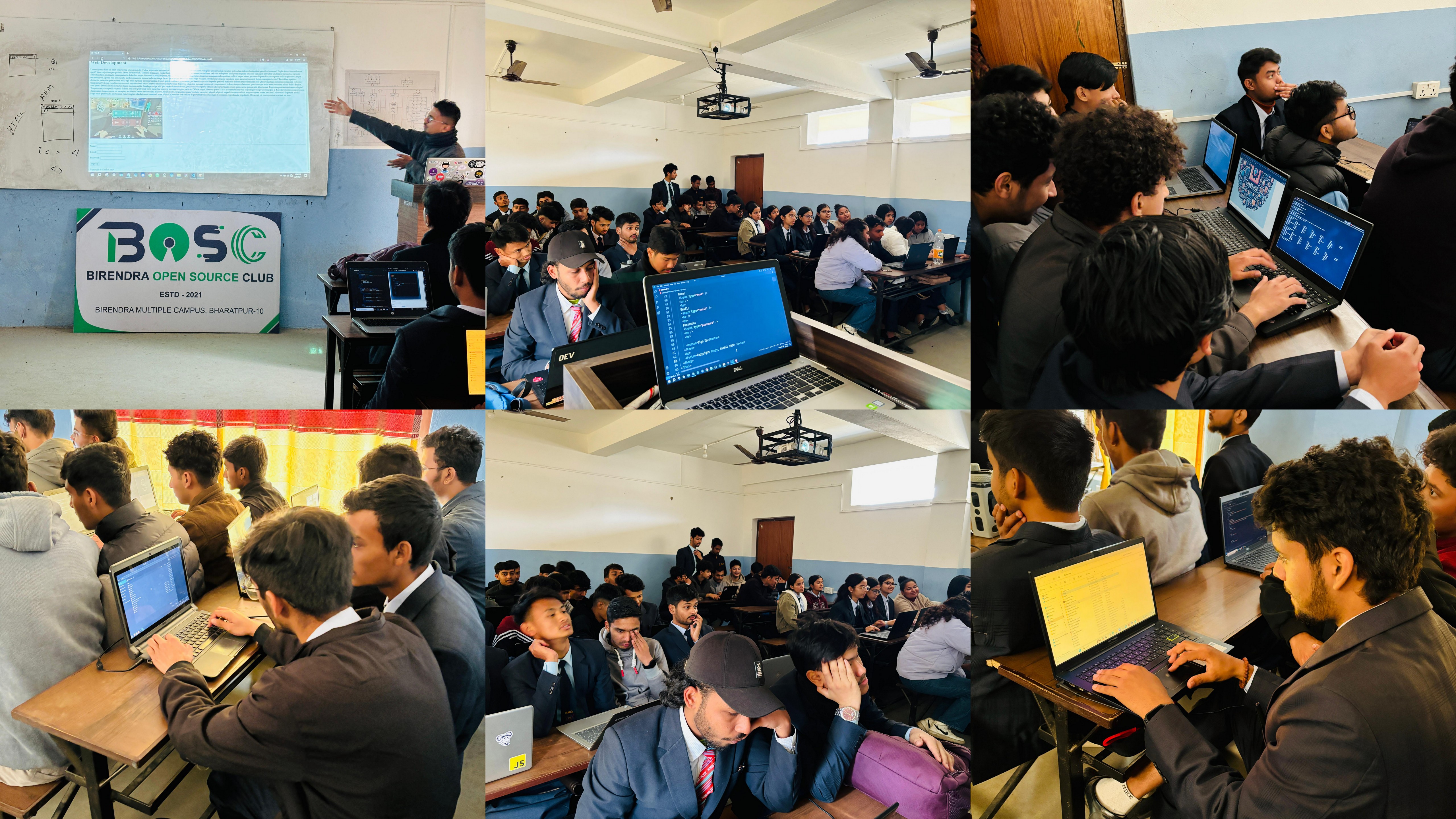 Attendees delved into computer science history, programming language evolution, and modern computing with Instructor Mr. Kushal Pathak, who also serves as the president of the Birendra Open Source Club, the organizing body of this event. Following this, they received web development mentorship. Throughout the workshop, they mastered internet basics and crafted their own webpages. On the second day, under Mr. Pathak's guidance, juniors explored programming language prospects and CSS fundamentals. Their task for the following day was to complete an incomplete project. The workshop, led by Mr. Pathak, commenced on February 4, 2024, and concluded on February 6, 2024. BOSC empowered junior students with JavaScript proficiency, showcasing projects like a color-toggler and calculator. Special appreciation to Mr. Kushal Pathak for his exceptional leadership and mentorship.