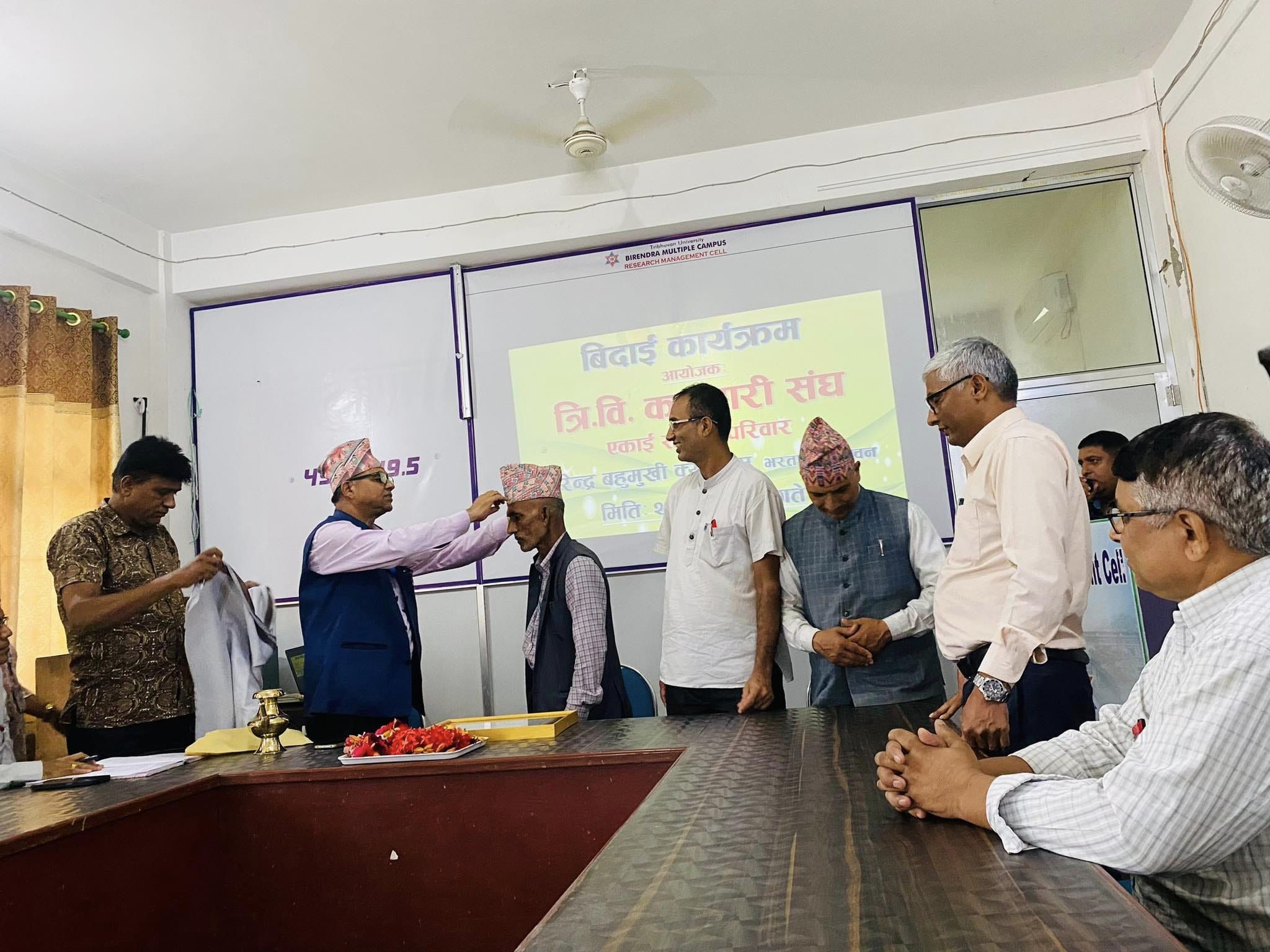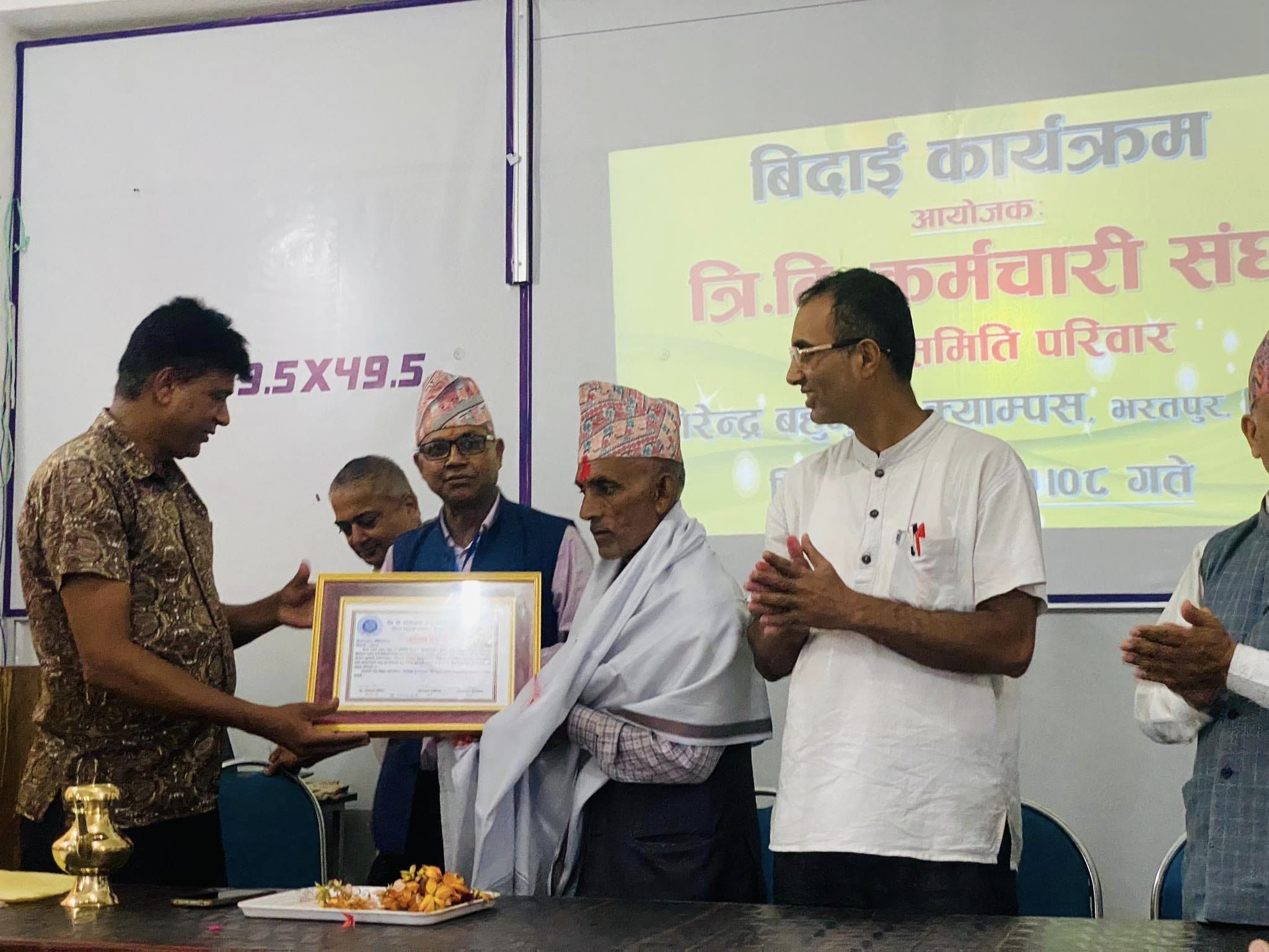कर्मचारी मित्र लाल अधिकारीको अनिवार्य अवकाशमा त्रिवि कर्मचारी संघद्वारा आयोजित विदाई कार्यक्रम