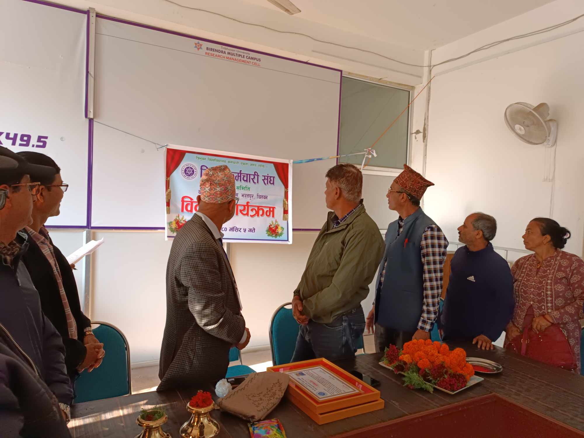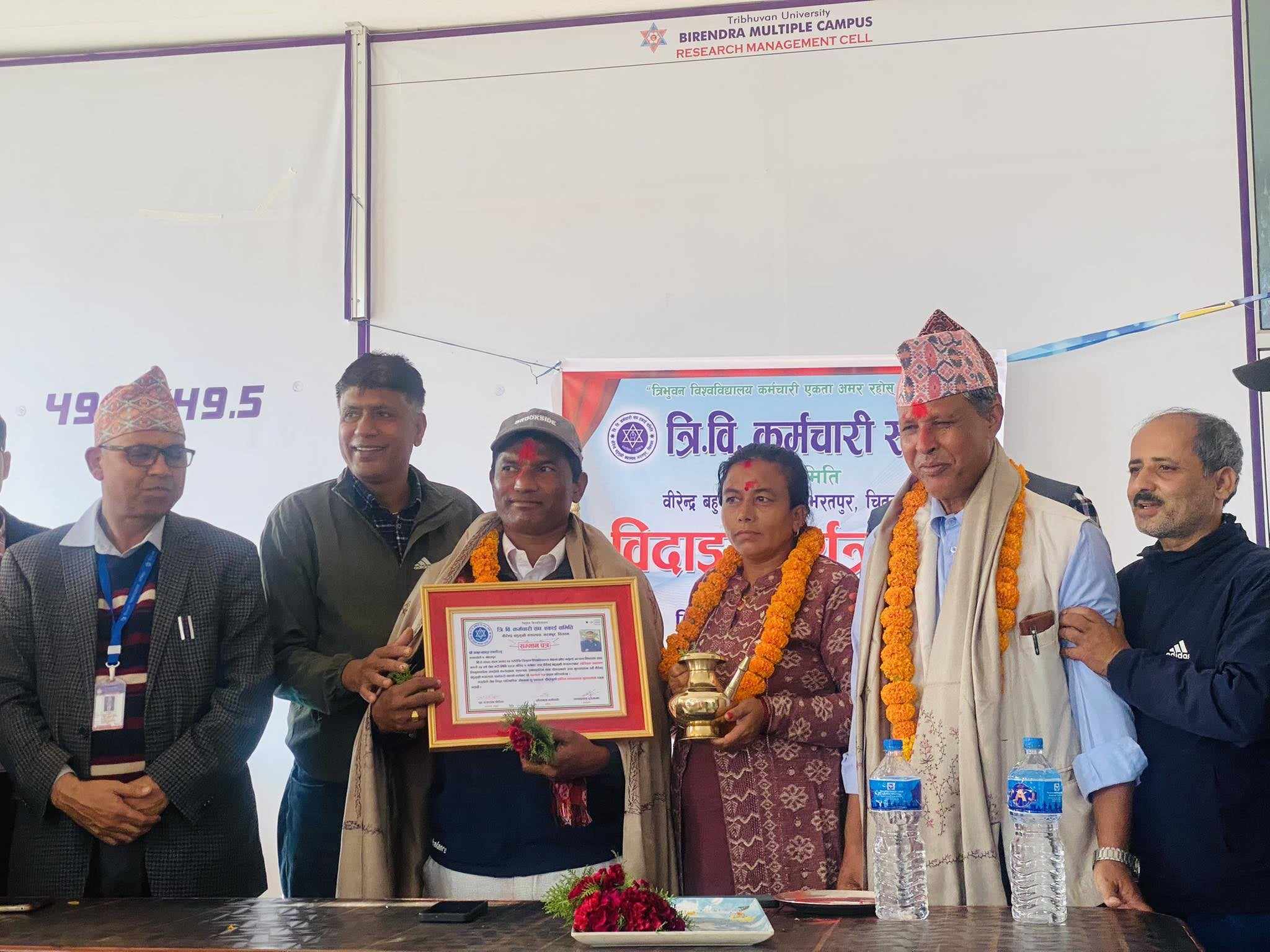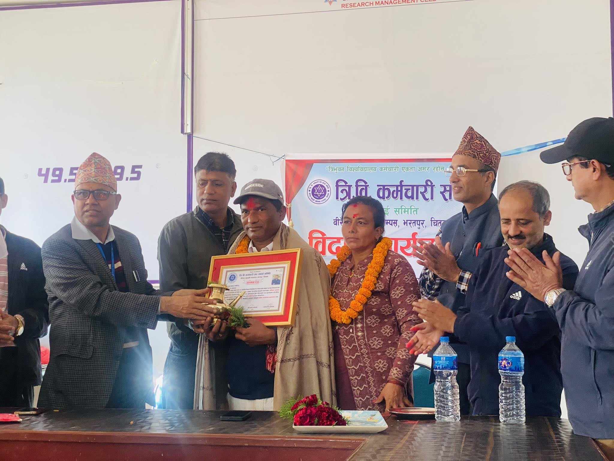 कर्मचारी अमृत कार्की र टेक बहादुर कार्कीको अवकाशमा त्रिवि कर्मचारी संघद्वारा आयोजित विदाई कार्यक्रम