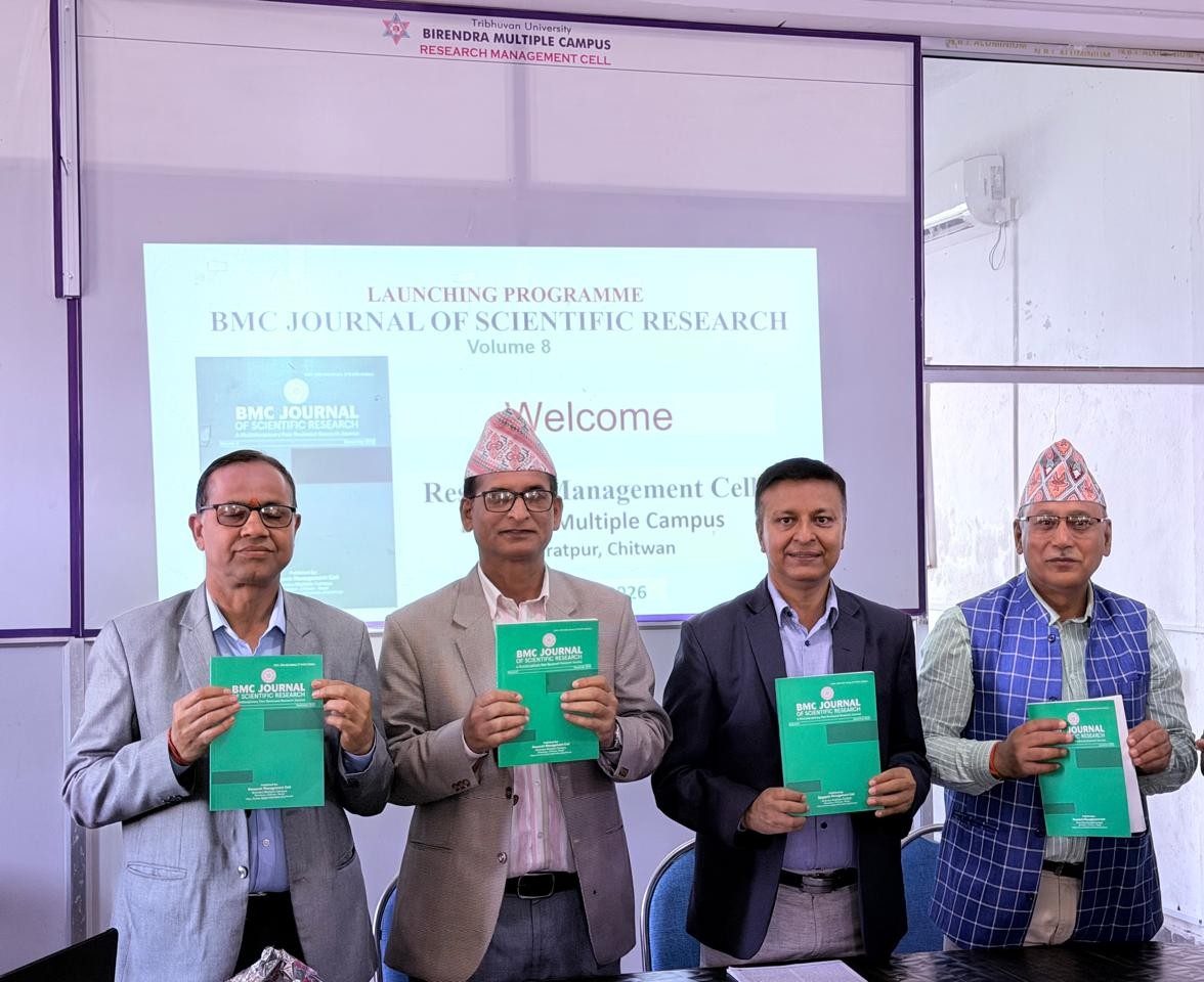 २७ चैत्र २०८२, चितवन/वीरेन्द्र बहुमुखी क्याम्पसमा क्रियाशिल ‘अनुसन्धान व्यवस्थापन कमिटी’ले आफ्नो आठौं अड्ढ शुक्रबार एक कार्यक्रमका बीच विमोचन गरेको छ ।