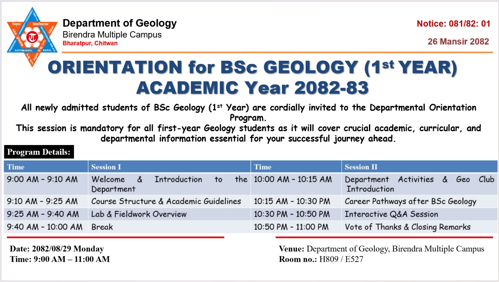 Orientation Program - B.Sc. Geology
