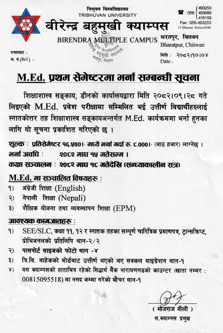 स्नातक तह तेस्रो वर्ष (2080 समूह) को कक्षा सञ्चालन...
