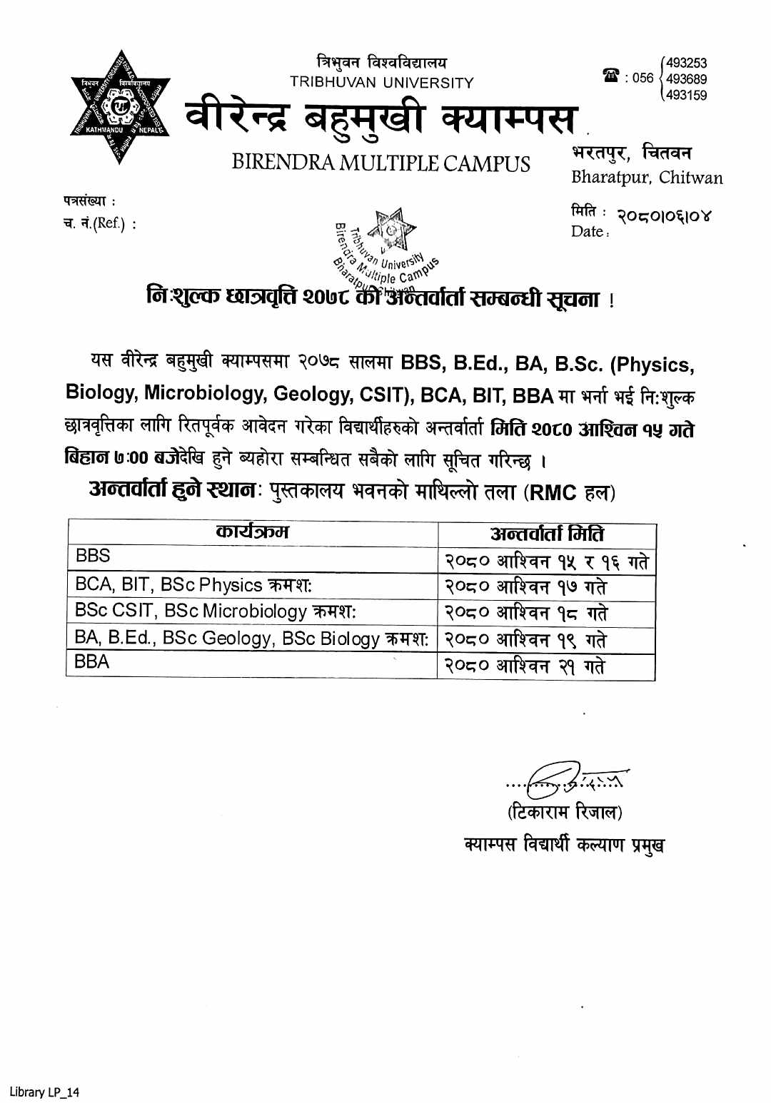 निशुल्क छात्रवृत्ति २०७८ को अन्तर्वार्ता सम्बन्धी सूचना
