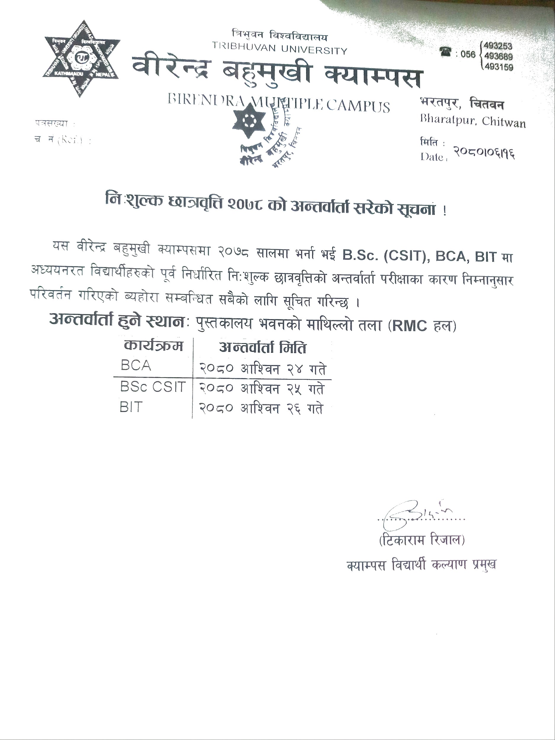 निशुल्क छात्रवृत्ति २०७८ को अन्तर्वार्ता सम्बन्धी पुनः सूचना