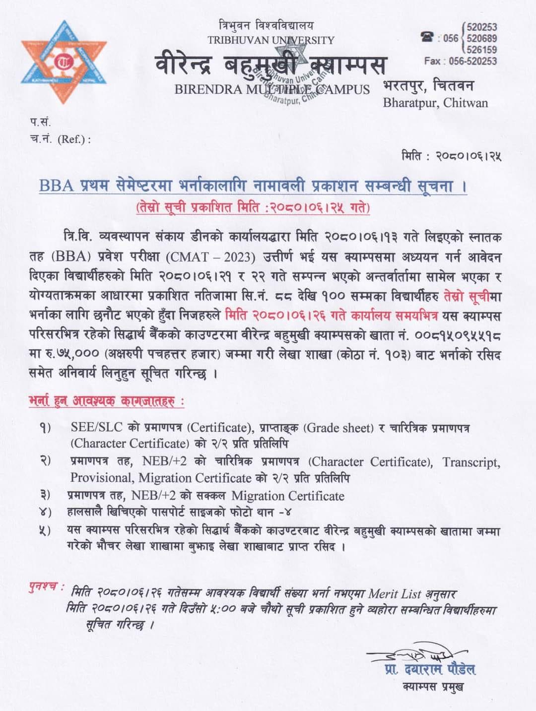 Admission Notice for BBA -2023 Batch - Third List
