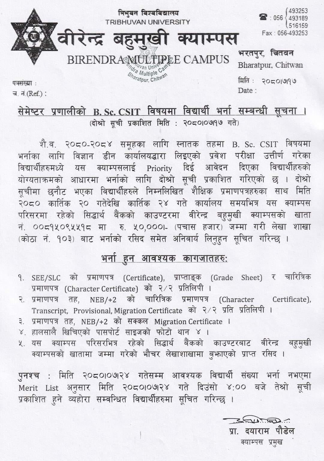 B.Sc. CSIT (2080) 2nd Admission List