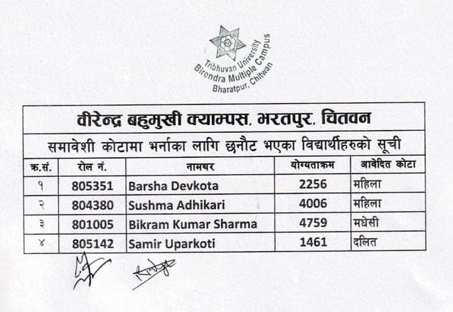 B.Sc. CSIT (2080) Quota Seat Admission List
