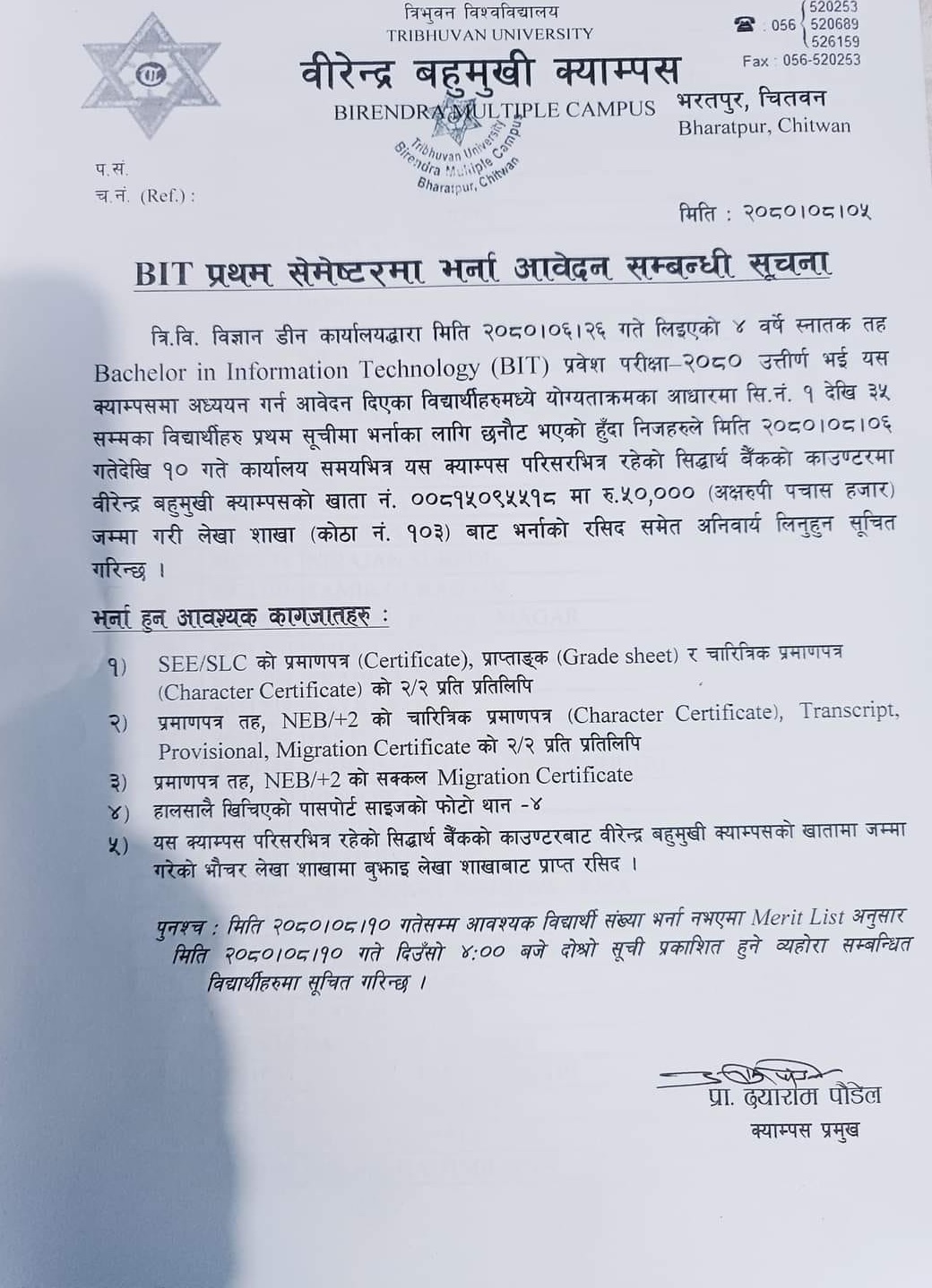 BIT 1st Semester Admission - First List