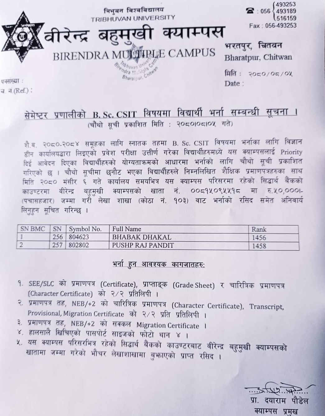 BSC CSIT and BIT 8th Sem. को परीक्षा नौविघामा सञ्च...