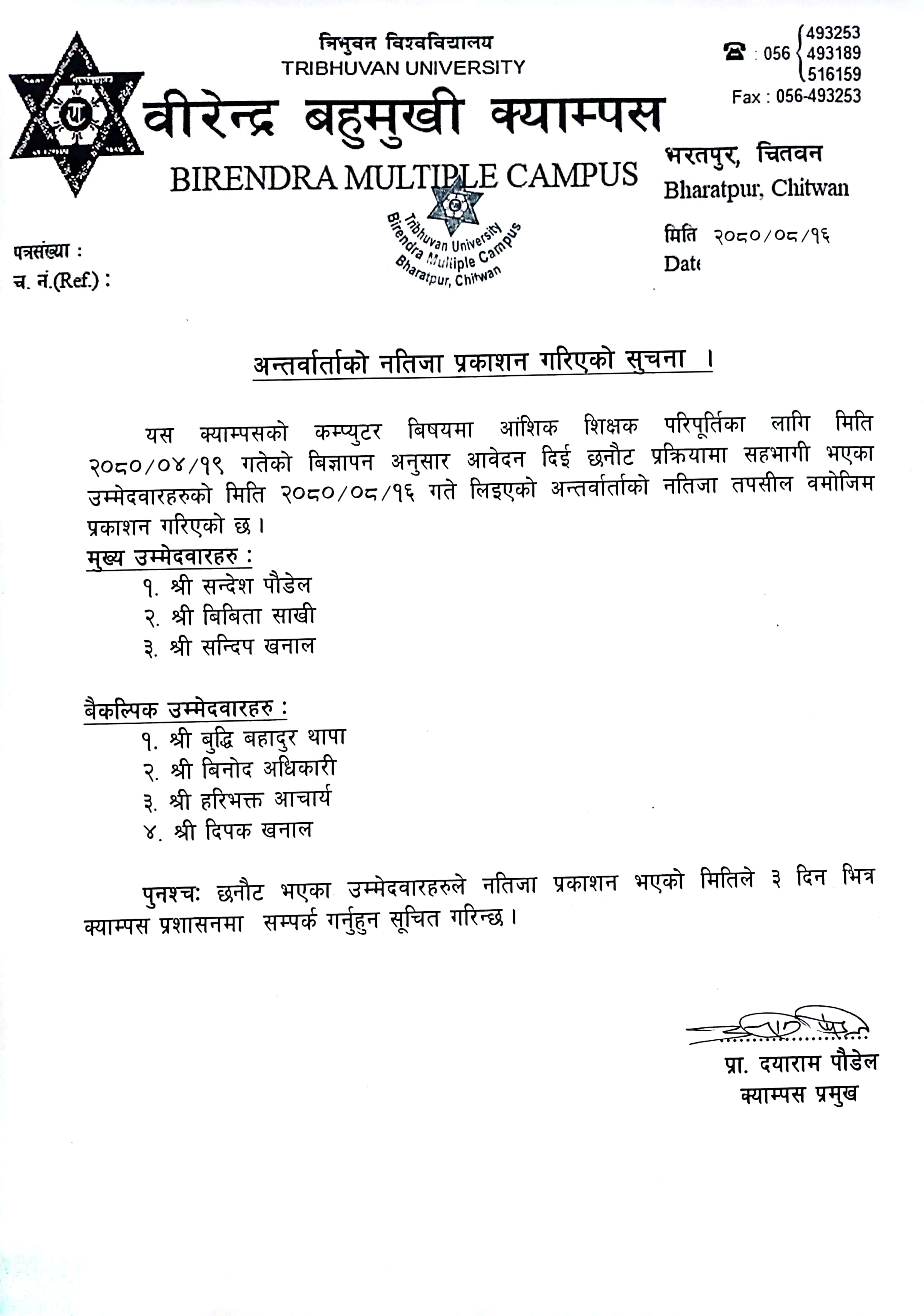 अन्तर्वार्ताको नतिजा प्रकाशन गरिएको बारे - आंशिक शिक्षक
