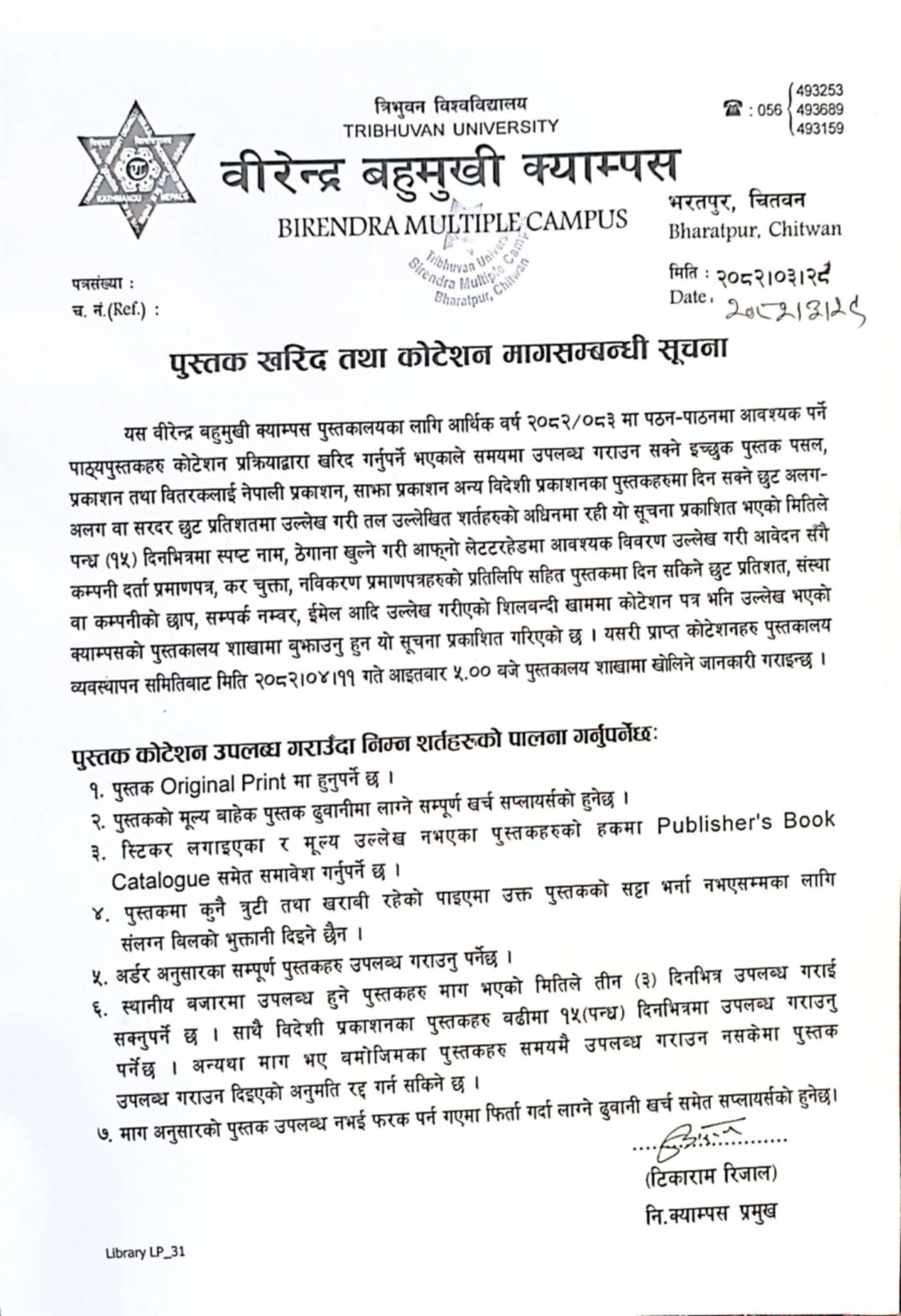 पुस्तक खरिद तथा कोटेशन मागसम्बन्धि सुचना