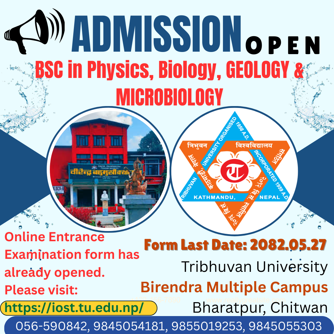 Admission Open in BSC Physics, Biology, Geology and Microbiology !!! Visit Birendra Multiple Campus