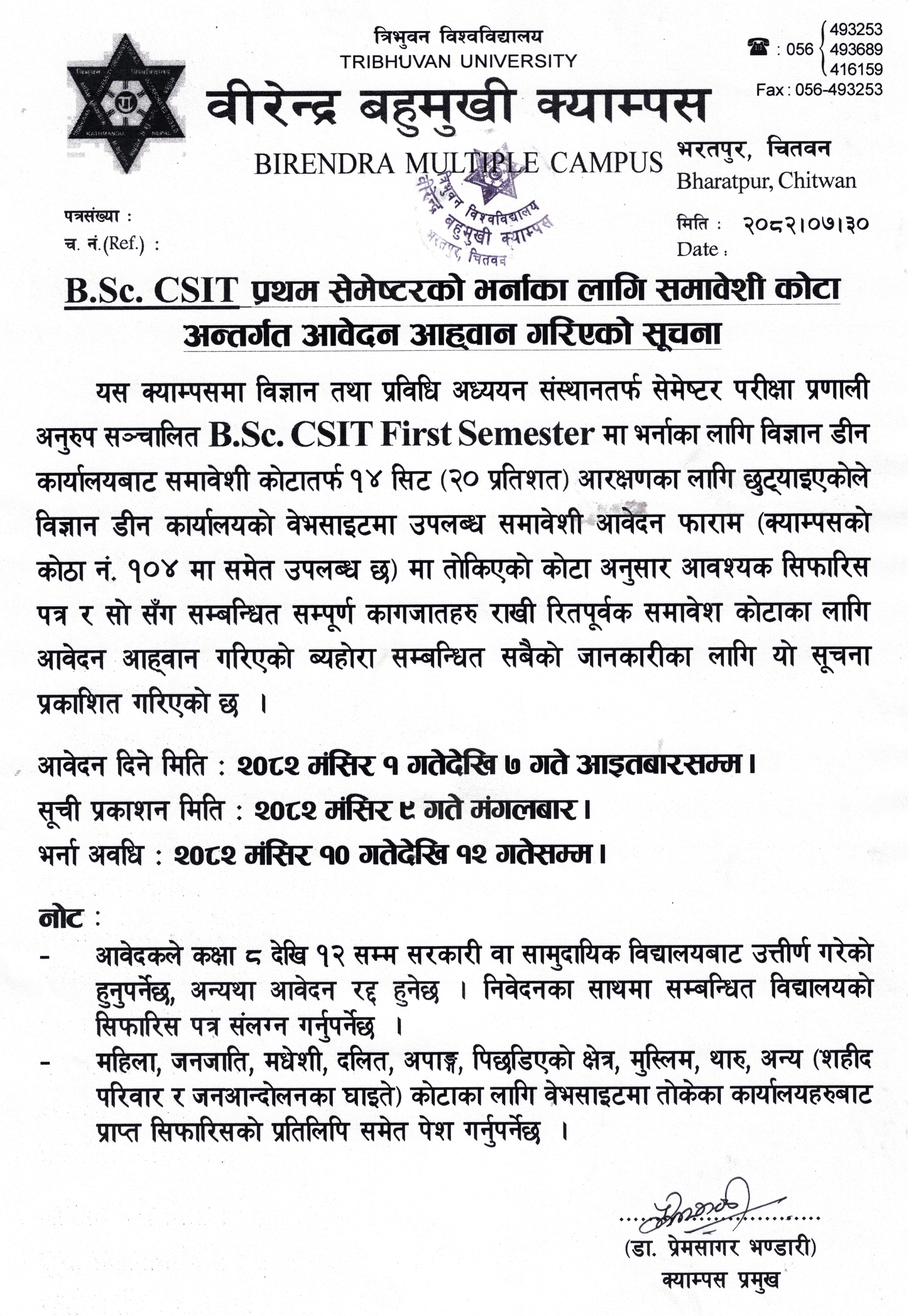 BSC CSIT and BIT 8th Sem. को परीक्षा नौविघामा सञ्च...